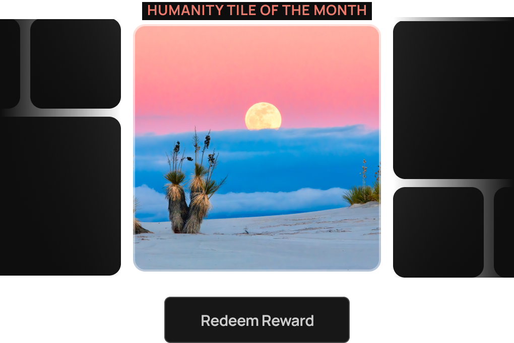 The Curator will highlight six of the month’s most impactful Humanity Tile. Each contributor will receive a meaningful token of appreciation from humanity.