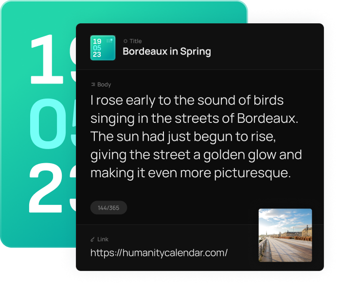 Humanity Calendar will be available to Humanity Tiles owner on New Year Day, and for public access on 8th Feb 2023.