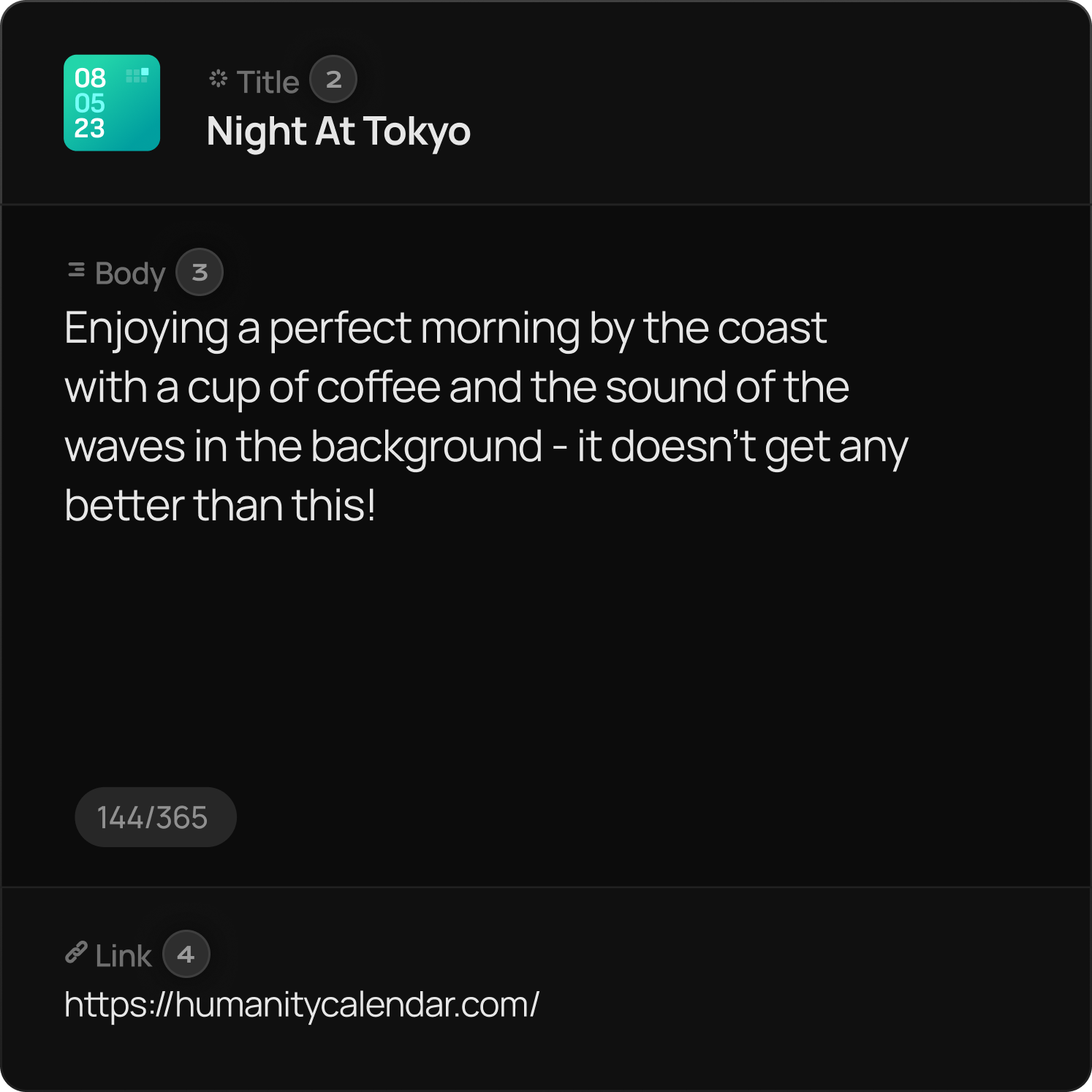 All contributions on Humanity Calendar will be made public, and 6 featured content from the community will be featured daily on humanitycalendar.com.